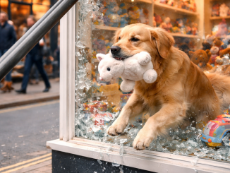 On a quiet street filled with small local shops, a golden retriever stood outside a toy store window. Inside the display were colorful toys, stuffed […]