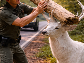 A Deer Walked Onto the Road With a Log Stuck in Its Antlers… A Ranger Noticed Just in Time