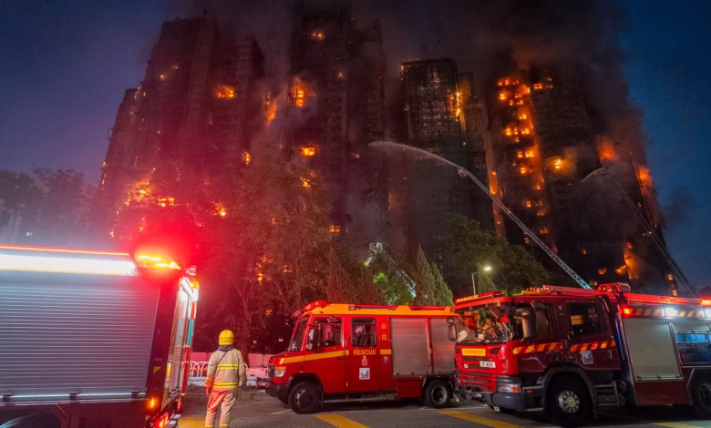 Ett helt bostadsområde står i lågor i Hongkong under onsdagsförmiddagen.Minst 13 personer har dött.Samtidigt sitter flera människor fast i de höga lägenhetshusen.Jättebranden bröt ut ordentligt under onsdagsförmiddagen, svensk tid, i distriktet Tai Po iHongkong.Branden startade först i två 31-våningshus, men spred sig snabbt till närliggande byggnader. Samtliga hus innehåller bostäder.Enligt BBC beräknas omkring 4 600 människor bo i det drabbade området. Höghusen var under pågående renovering, vilket har lett till ovisshet kring hur många som faktiskt kan ha befunnit sig i byggnaderna vid tillfället för branden.