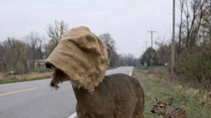 Unable to see where it was going, the deer began stumbling toward the road.