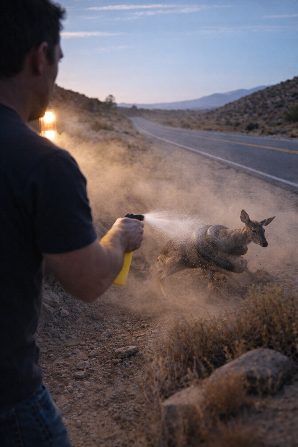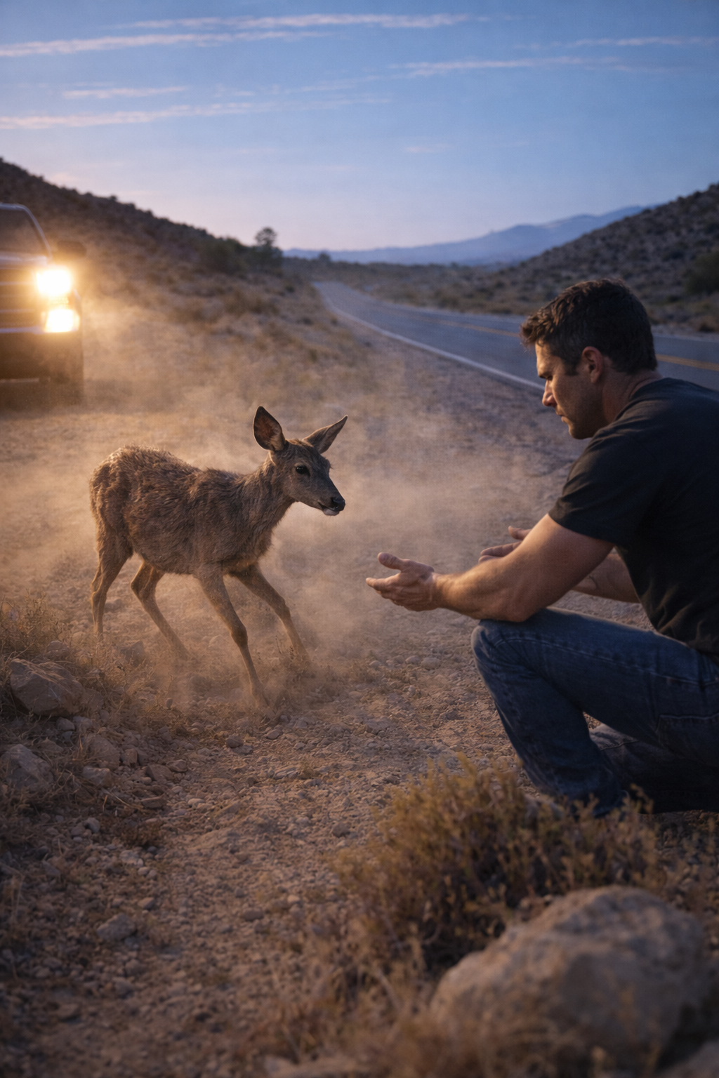 He stepped out of the truck and walked a few steps closer, careful not to move too fast. The deer reacted slightly, its body tense, unsure of what this new presence meant.