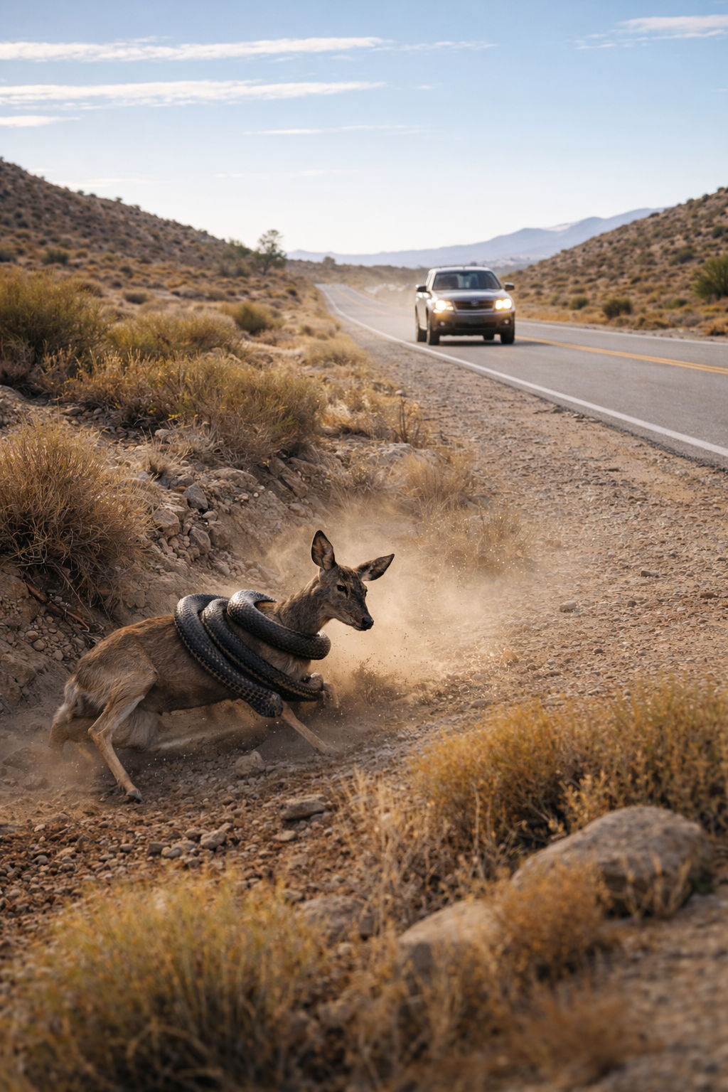 From far away, a pickup truck appeared, moving steadily along the highway. It was just another vehicle on an empty road, nothing unusual, nothing that would normally stop.