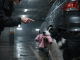 As lightning flashed overhead, she squeezed beneath a partially collapsed barrier, injuring herself slightly in the process. She reached her puppy and tried desperately to move the heavy wooden plank trapping him.