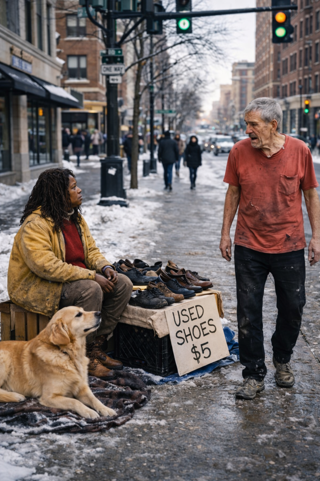 Not long after, the wealthy man returned to the same street where the woman had been selling used shoes.