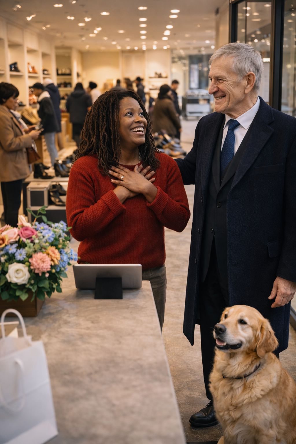 Behind the counter stood the same woman who had once sold shoes from wooden crates on the street.