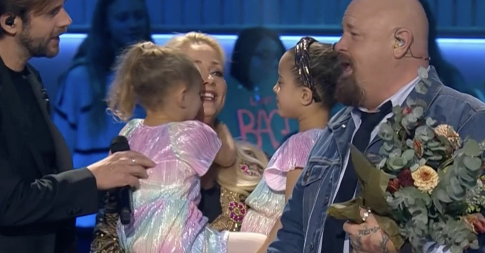 Från sidan klev plötsligt Bagges fru, Johanna Lind Bagge, in tillsammans med hans gudbarn Alicia och Esther. Bagge bröt ihop i tårar.