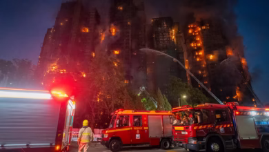 Ett helt bostadsområde står i lågor i Hongkong under onsdagsförmiddagen.Minst 13 personer har dött.Samtidigt sitter flera människor fast i de…