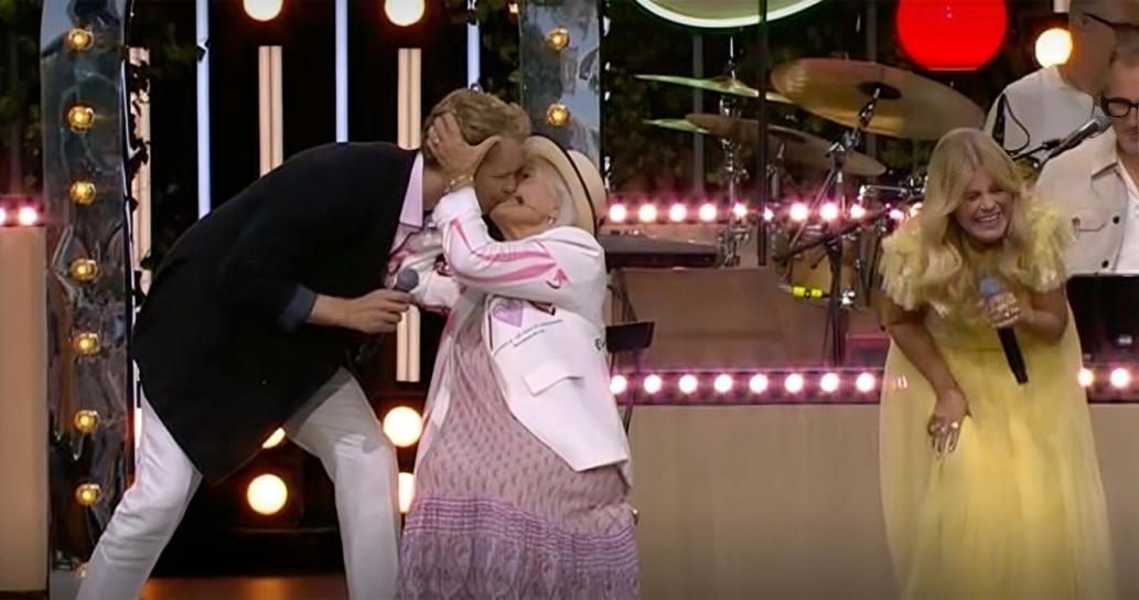 Björn Gustafsson fullföljde sketchen genom att framföra en specialskriven sång till Christina, där han skämtsamt kallade henne sin ”nya fru”. Han avrundade med att ge 87-åringen en kärleksfull puss på munnen – allt medan Pernilla Wahlgren stod bredvid, märkbart överraskad och oförmögen att hålla tillbaka skrattet.