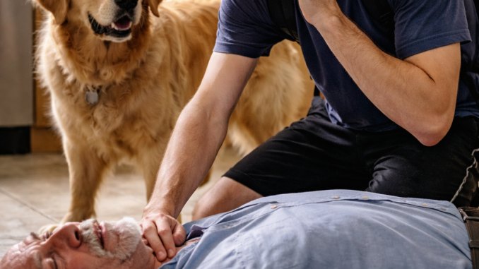 He knelt down immediately, checking the man.