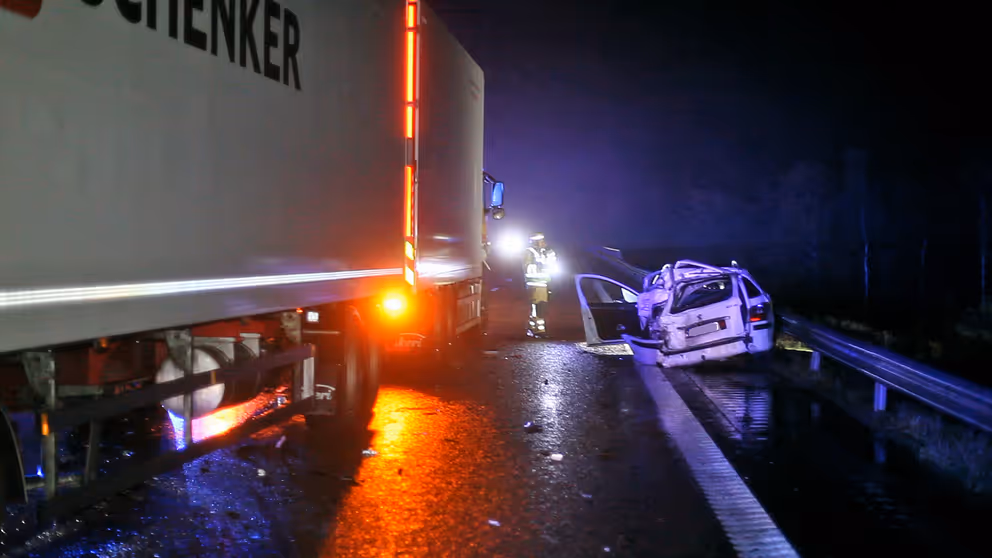 – Enligt långtradarchauffören var personbilens baklyktor släckta och att han därför inte hann väja i tid för att undvika kollision, säger polisens vakthavande befäl Torbjörn Lindqvist.Tre personer var inblandade i själva olyckan och en av dem fördes till sjukhus i ambulans med en sårskada i huvudet.