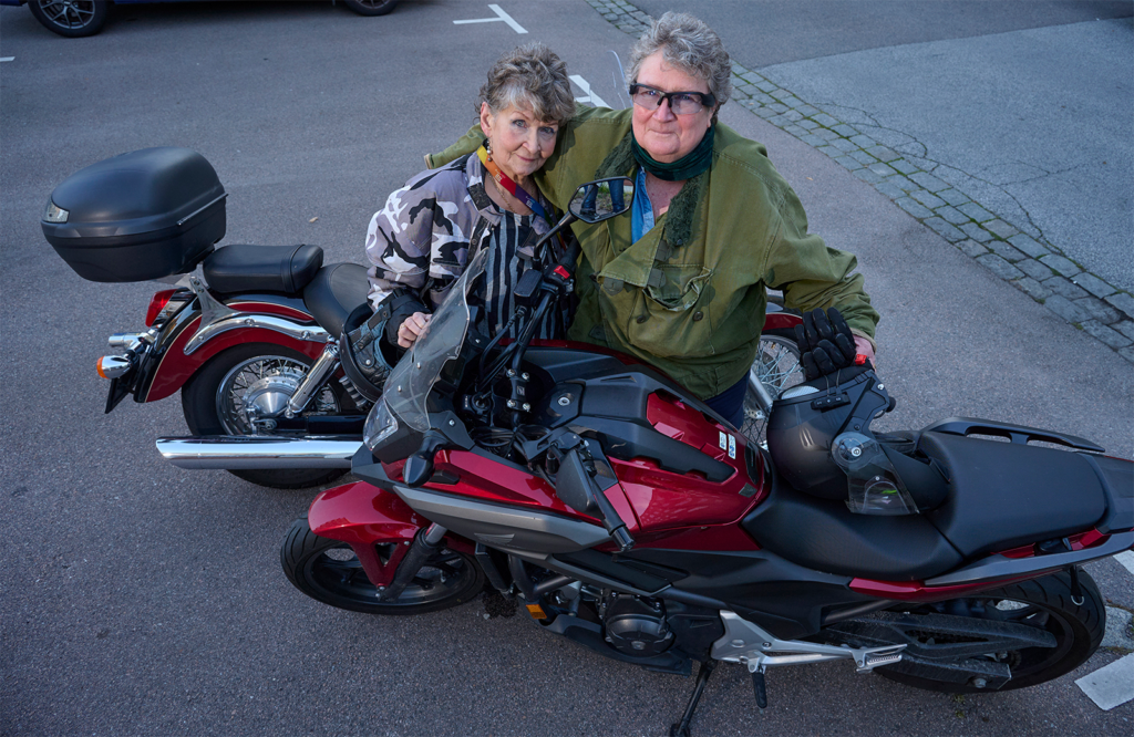 – Jag började köra hoj för ett år sedan under Evas ledning, berättar Marie. Jag hoppas att snart kunna ta mc-kortet. Att jag börjat övningsköra motorcykel i 70-årsåldern visar samtidigt att det aldrig är för sent.