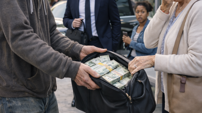 The businessman stepped back slightly, his expression tightening. He didn’t make eye contact. He didn’t ask why. He didn’t hesitate long enough to think.