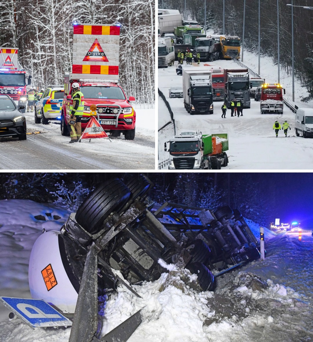 Flera rapporter har kommit in om kollisioner och avåkningar, där både personbilar och tyngre fordon har varit inblandade. Polisen har fått ett ökat antal samtal angående olyckor, och i vissa fall har vägbanor fått stängas av för räddningsinsatser. Skadorna har varierat från mindre till allvarliga, och räddningstjänsten arbetar intensivt för att hantera situationen.Väderprognoser och varningarMeteorologiska institut har varnat för fortsatt dåligt väder med både regn och frost i många delar av landet. Det finns risk för isbildning, vilket kan leda till ytterligare olyckor om bilister inte anpassar sin hastighet och körstil. Varningar har utfärdats på sociala medier och via nyhetskanaler för att informera allmänheten om de farliga vägförhållandena.Policyns insatser