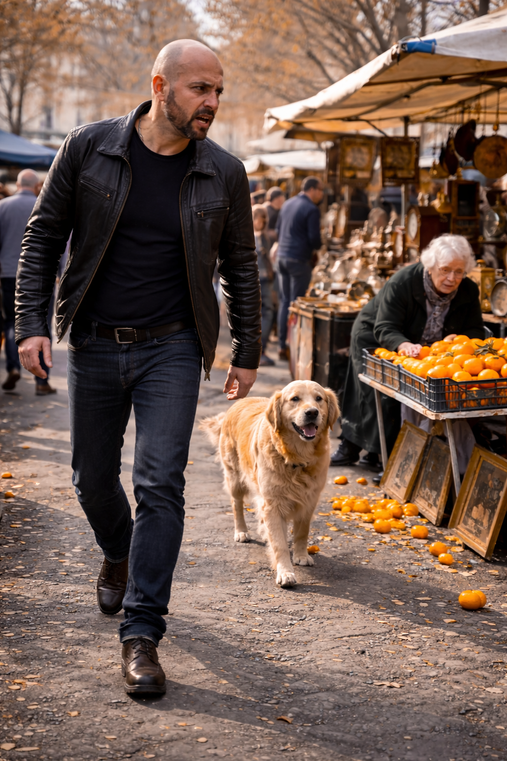 As the rude man continued walking through the market, something caught the dog’s attention.