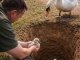 Instead of going straight to the shed, he veered toward an irrigation canal where a young wildlife ranger was repairing a section of fence. The ranger, in his early 30s, wore a green uniform and work gloves, focused on tightening wire along a wooden post.