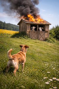 They pressed against the open window spaces, bleating in confusion. The half-door at the front remained closed, and the latch had warped slightly from heat. Smoke began filling the interior.