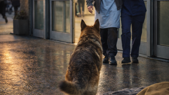 Someone left a small blanket beside him. A child carefully patted his head. He accepted the attention politely — but never left his post.