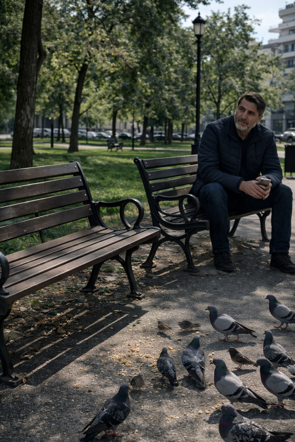 Not far away, a man sat quietly on another bench with a cup of coffee in his hands. At first, he barely noticed her. Just another person in the park.