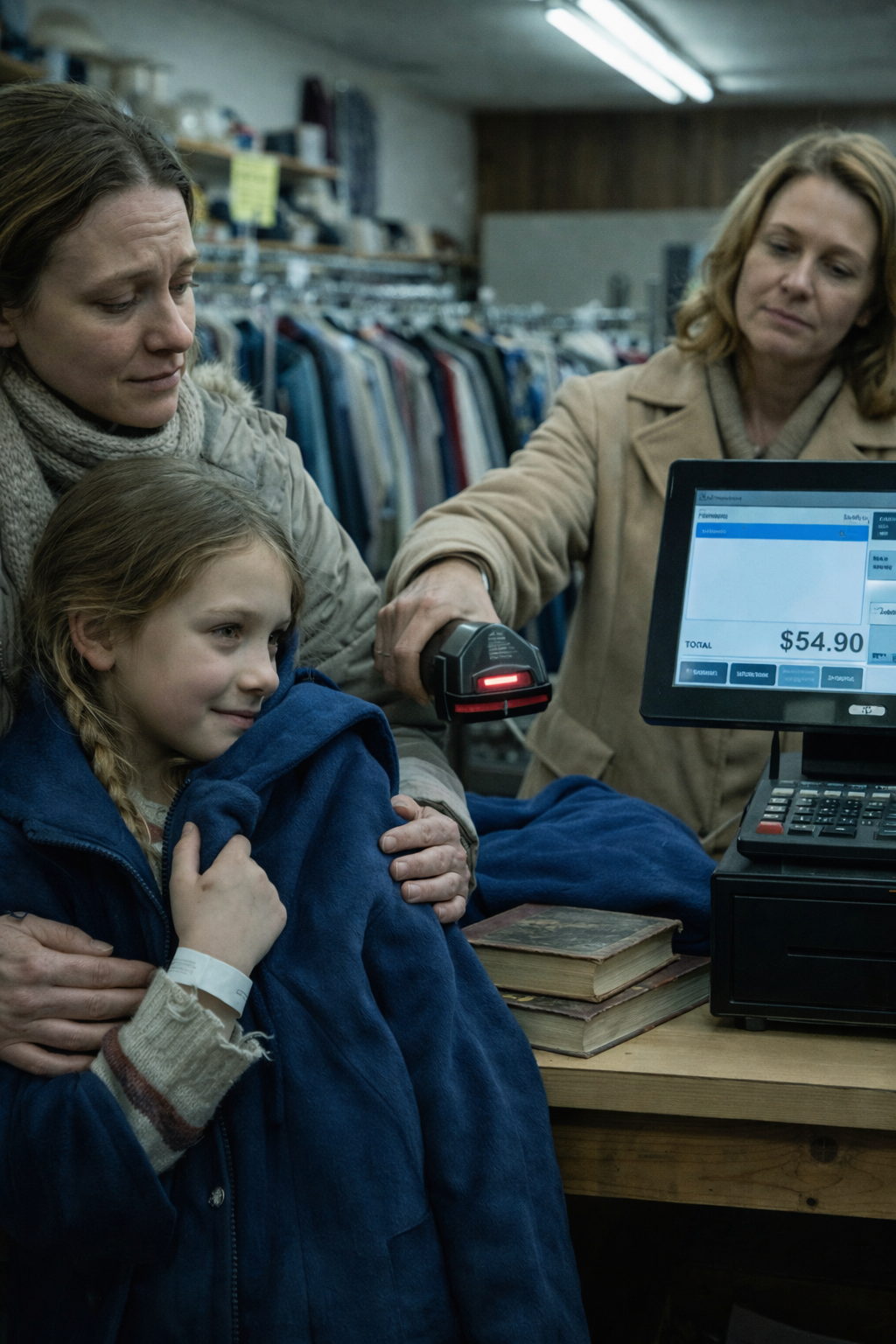 I was just trying to buy a secondhand coat for my daughter with what little money remained after hospital bills. Then a stranger’s remark in the thrift store line turned an ordinary moment into something that changed everything.