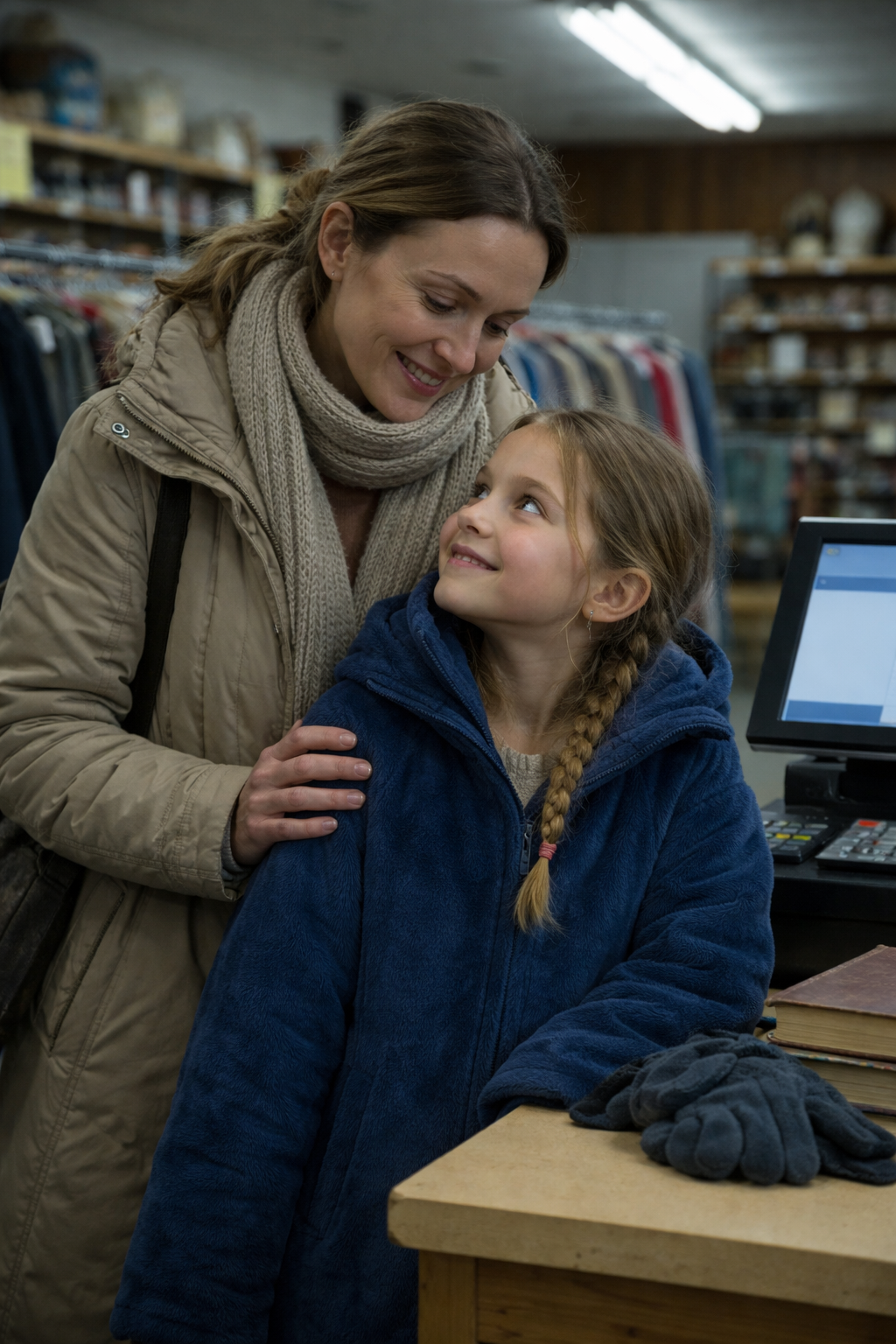 I was just trying to buy a secondhand coat for my daughter with what little money remained after hospital bills. Then a stranger’s remark in the thrift store line turned an ordinary moment into something that changed everything.