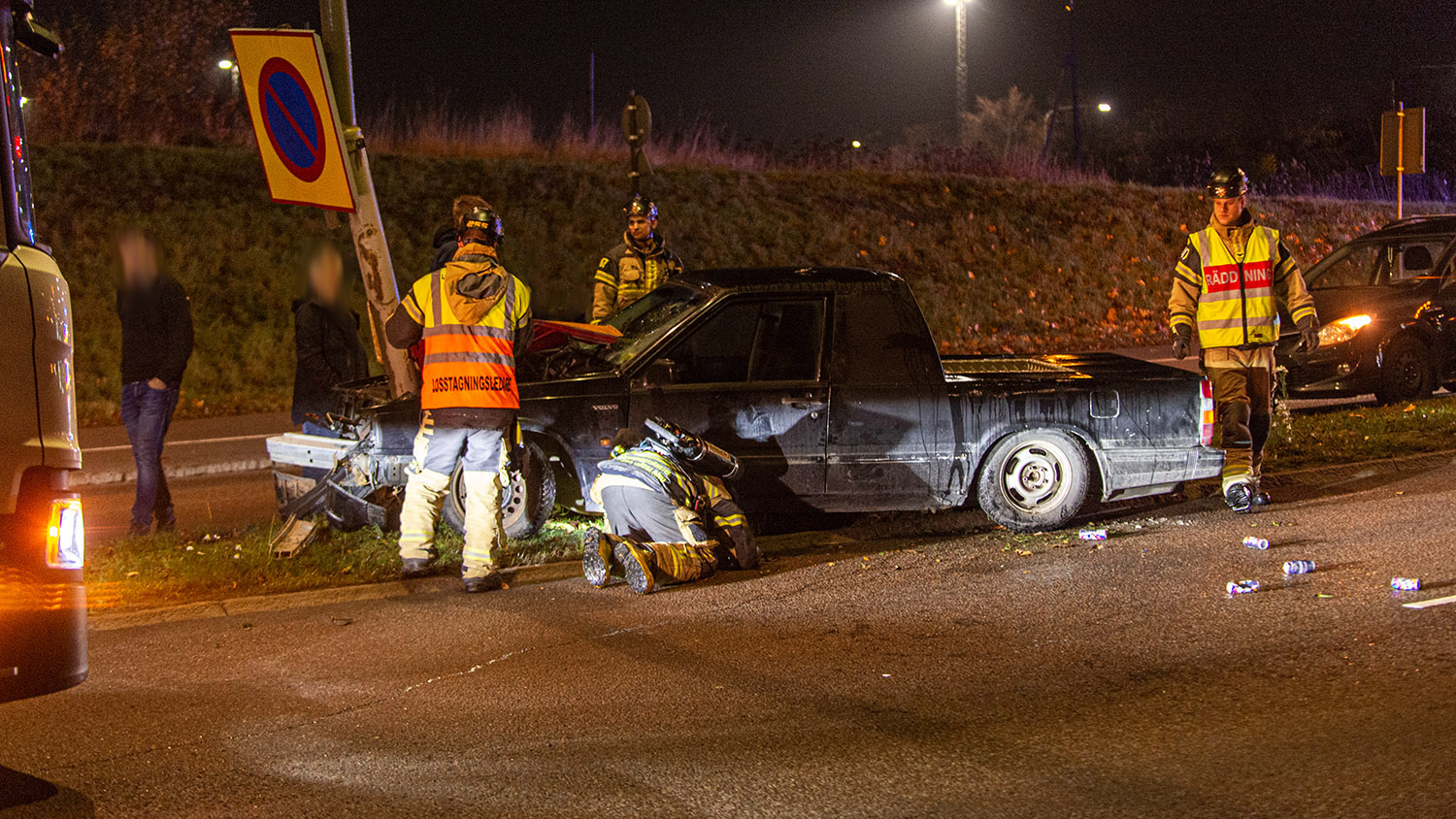 “Just nu: A-traktor i olycka med lyktstolpe – polisen på plats”