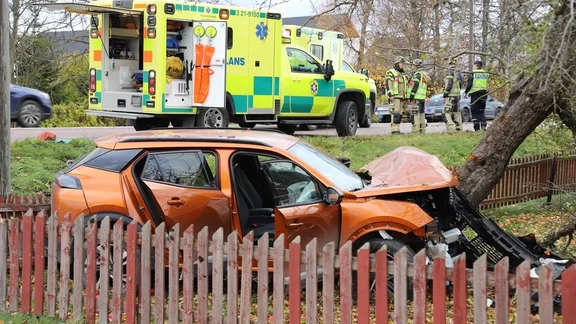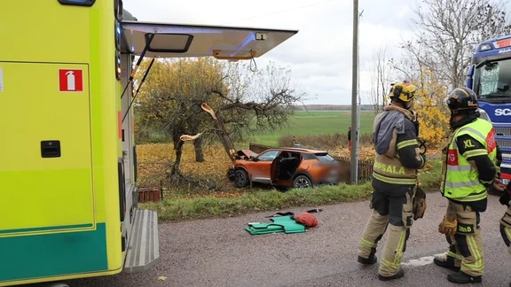 Kraftig krasch: Personbil körde rakt in i träd – föraren fick lindriga skador
