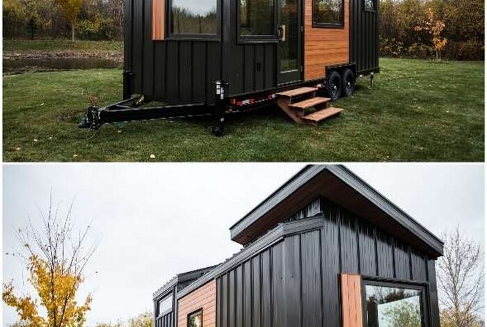 Det verkar som att skapandet av små hus inte längre kommer att överraska någon, men ibland kan du se verkligt unika projekt. Som till exempel ett kanadensiskt pars hus, som blev som ett fullfjädrat boende, och inte en miniatyrkennel. Trots att deras lägenheter är byggda på endast 24,9 kvadratmeter. m, de har plats för alla nödvändiga vardagsrum, och badrummet påminner om ett respektabelt spa. Samtidigt är huset specialdesignat för det hårda kanadensiska klimatet, där termometern under vintermånaderna kan sjunka till minus 40.