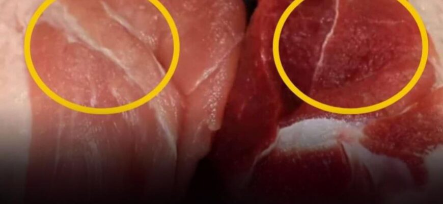 Vid köp av fläskkött bör du titta på färgen. Välj bitar som har en fin rosa eller rödaktig färg – det är ett tecken på färskt kött.