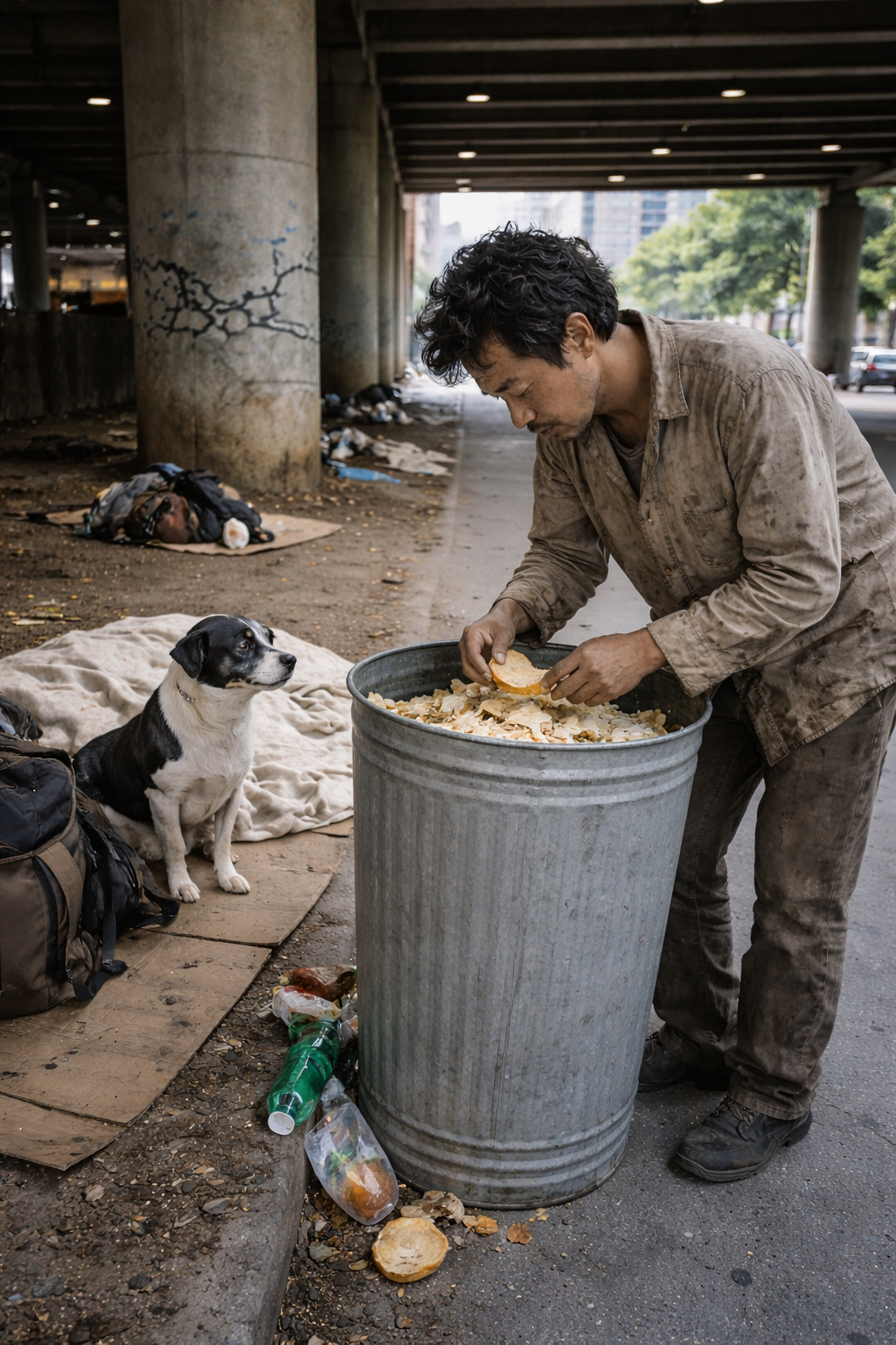 Even in hardship, he chose to care for the dog first.