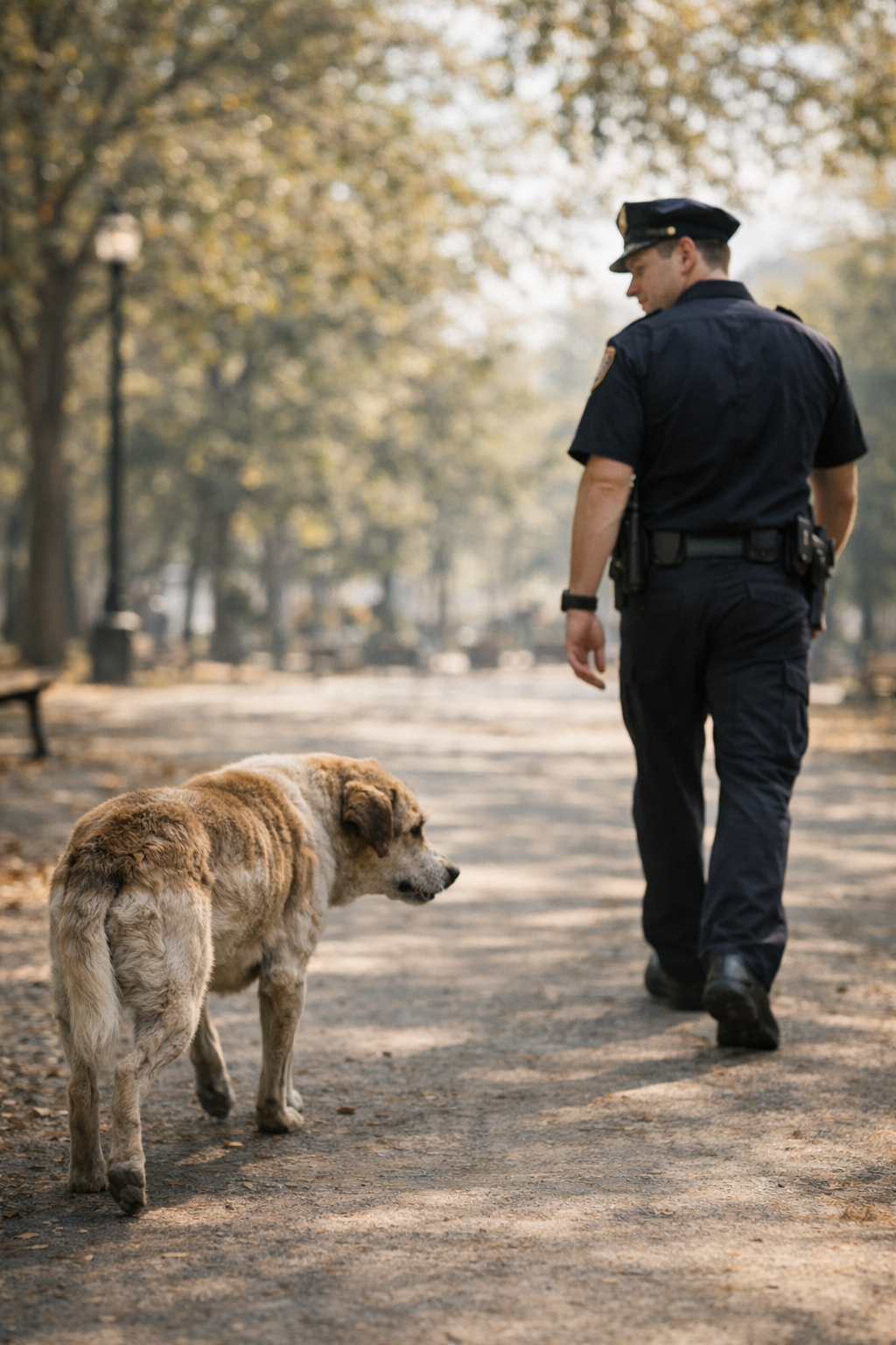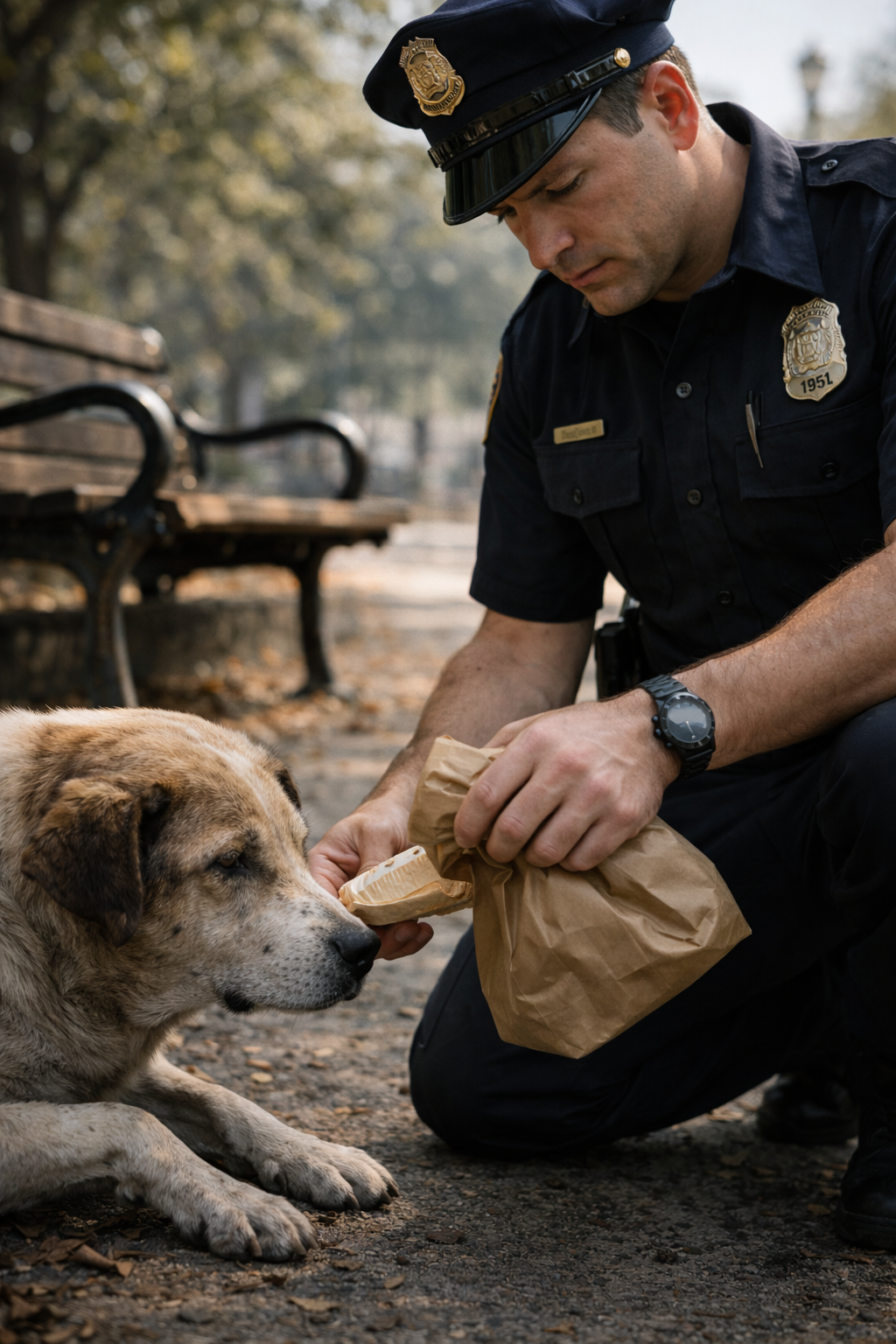 The park around them stayed the same. People walked, leaves moved slightly in the wind, and nothing in the environment reacted to what was happening. But for the officer, everything had already changed.