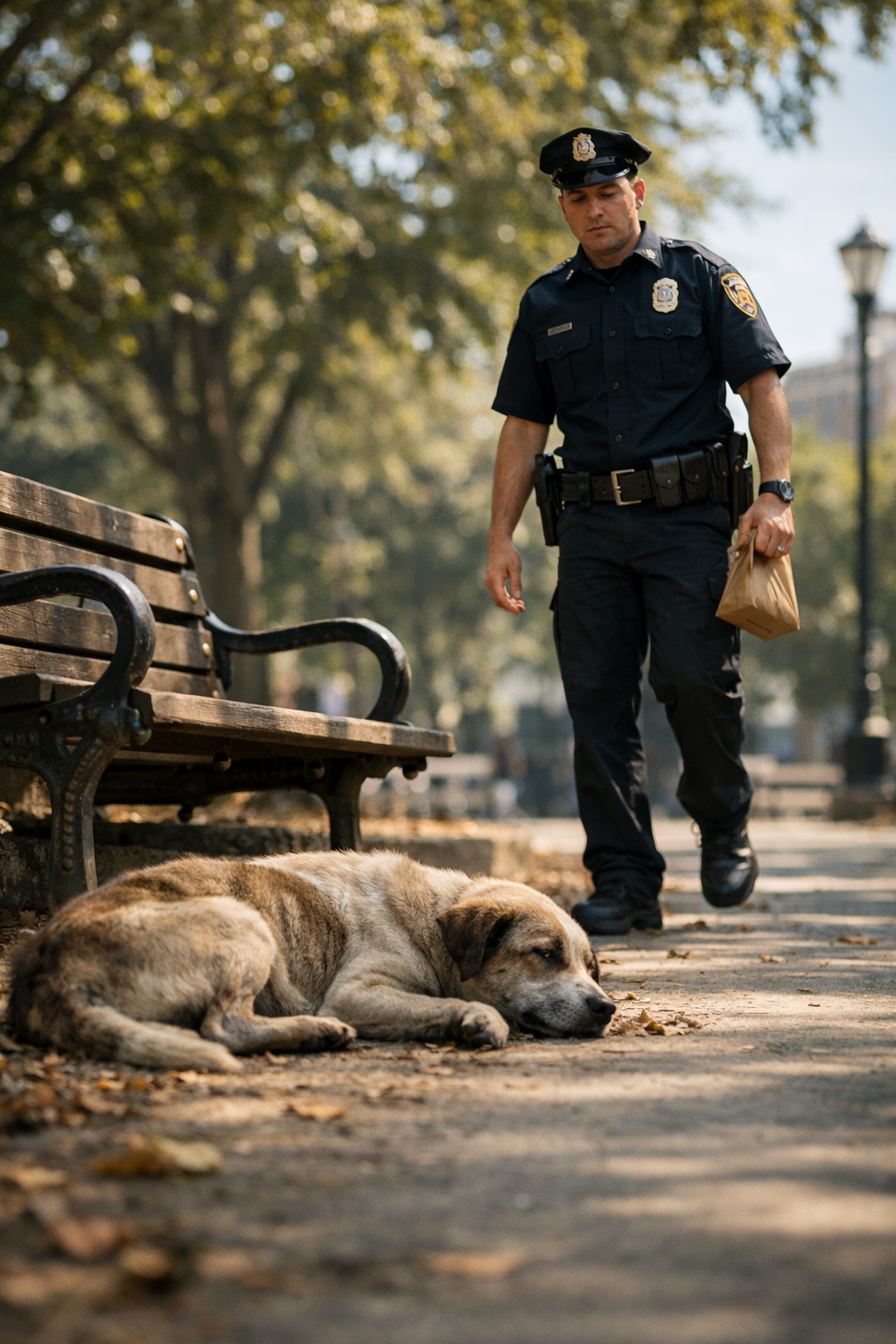 The park around them stayed the same. People walked, leaves moved slightly in the wind, and nothing in the environment reacted to what was happening. But for the officer, everything had already changed.