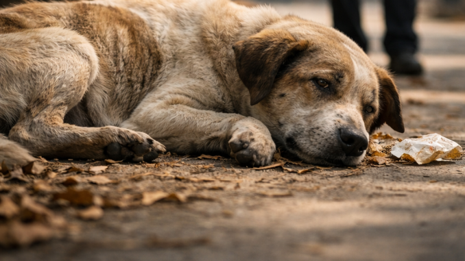 As he stood there, the details became clearer. The dog’s breathing was slow and uneven. Its eyes were half open, reacting weakly, not fully aware of its surroundings.