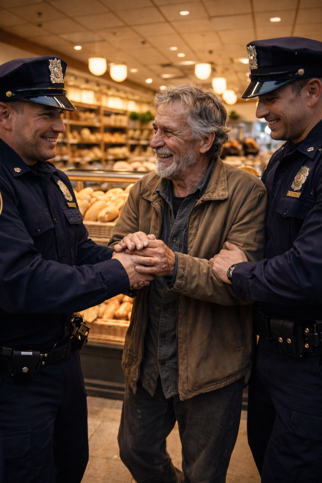 Soon after, the officers gently guided the old man toward their police car.