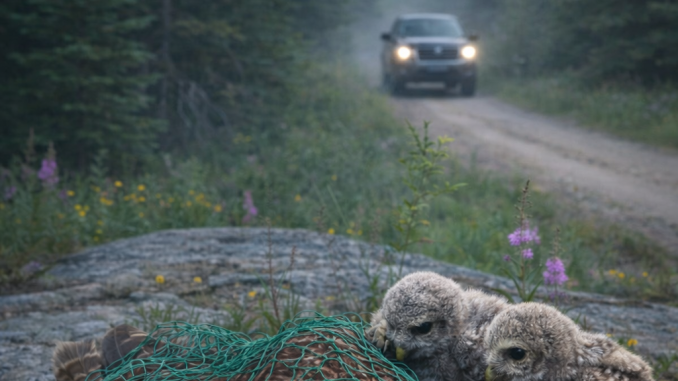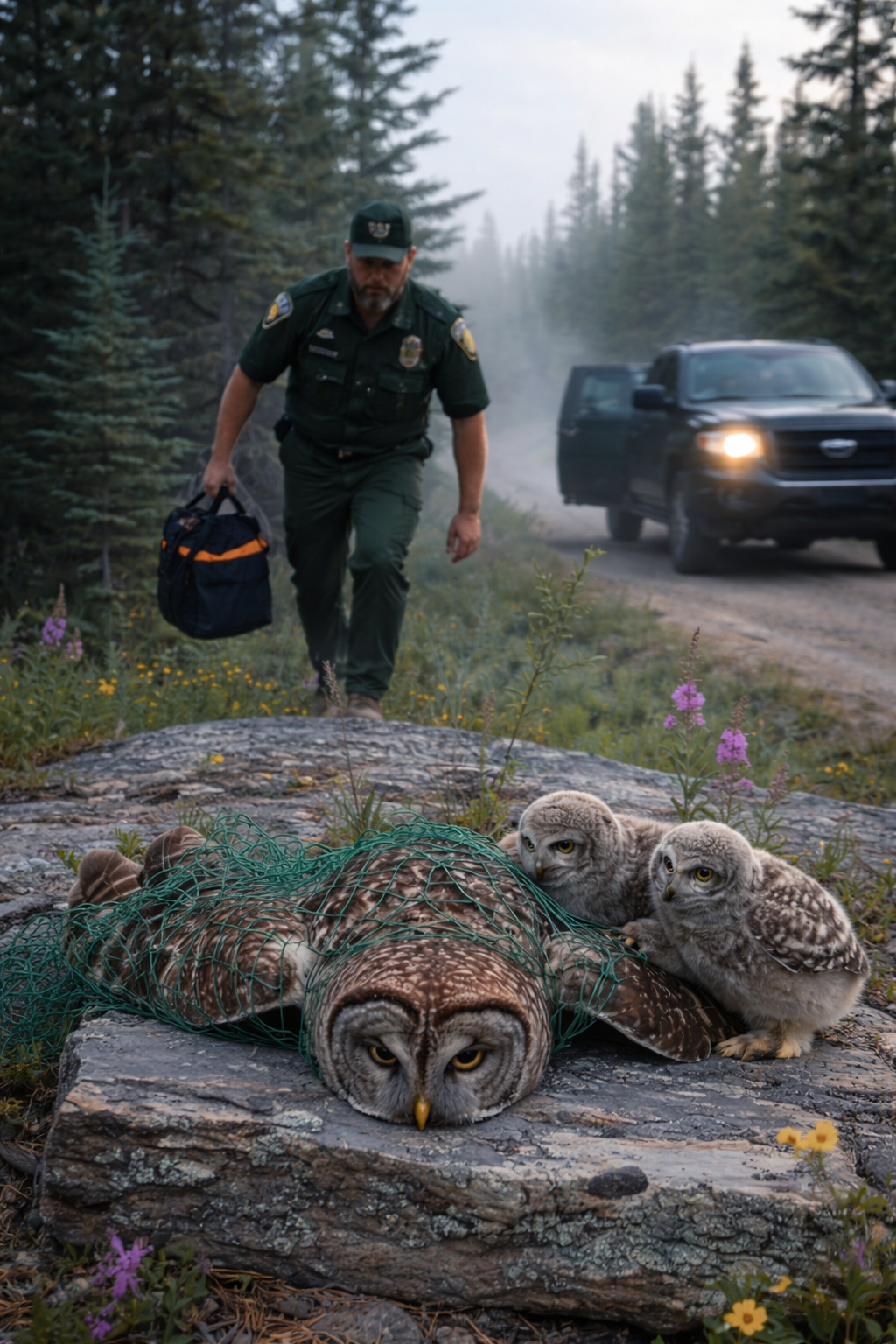 They pecked gently at the net with their small beaks, trying to free the trapped owl.