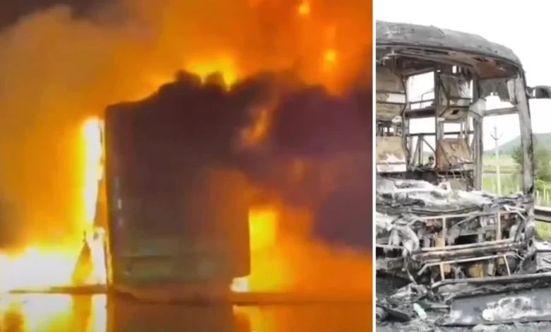 Dussintals omkomna i våldsam bussbrand i södra Indien