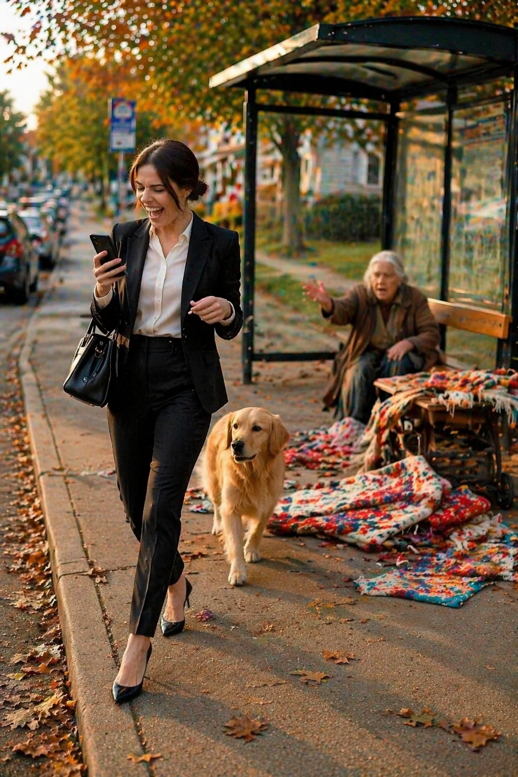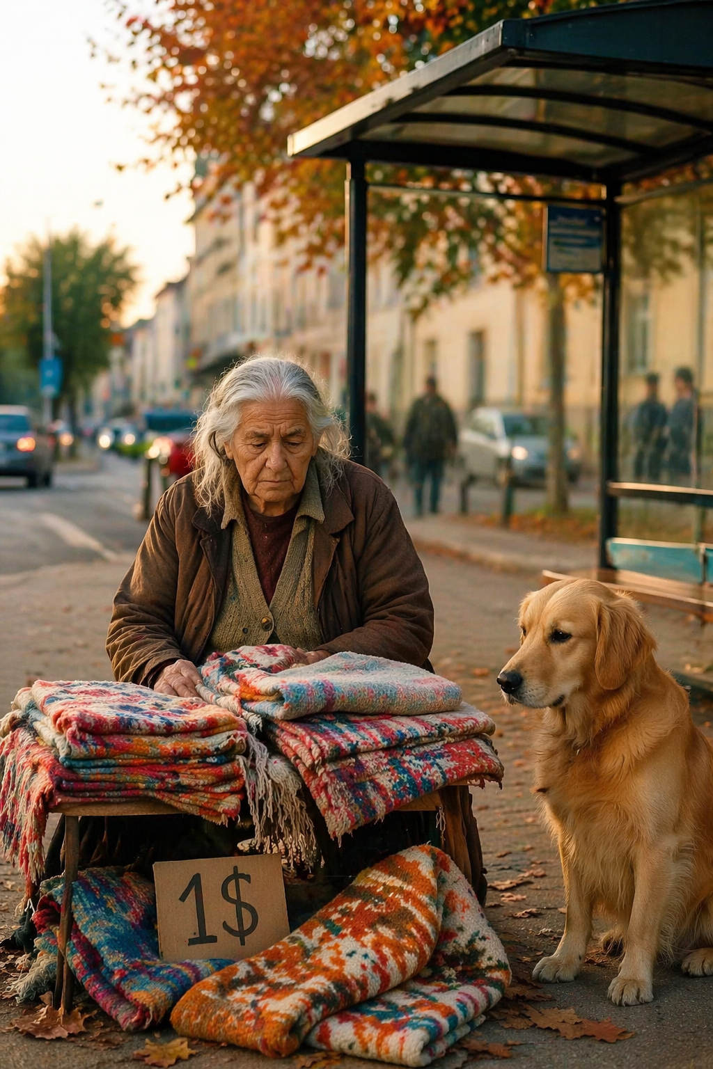The bus stop sat quietly on the edge of the street, surrounded by falling autumn leaves and the soft glow of late afternoon light. It was the kind of place people passed through without thinking, a brief stop in the middle of busy lives. Conversations were short, footsteps were quick, and attention rarely stayed in one place for long.