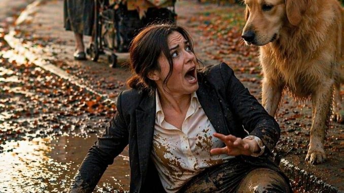 As she walked, the sidewalk narrowed near a muddy roadside patch left behind by the rain. The ground there was uneven, the surface soft, but she didn’t notice.