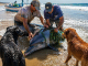 The dog stood up immediately.