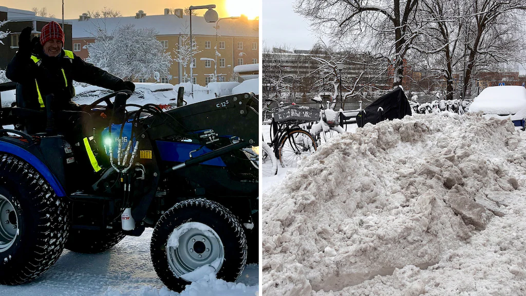 – Det är jättesvårt. I går när jag skulle ut och röja var det ju tusen miljoner människor överallt och barn med pulkor och grejer. Så det är svårt att röja och försöka få bort snön. Men vad fan, det där är inga problem. Nu har jag gjort ena gården och sen ska jag iväg och ta den andra gården när vi är klara. Sen är det bara att flytta snö sen. Det ordnar sig.