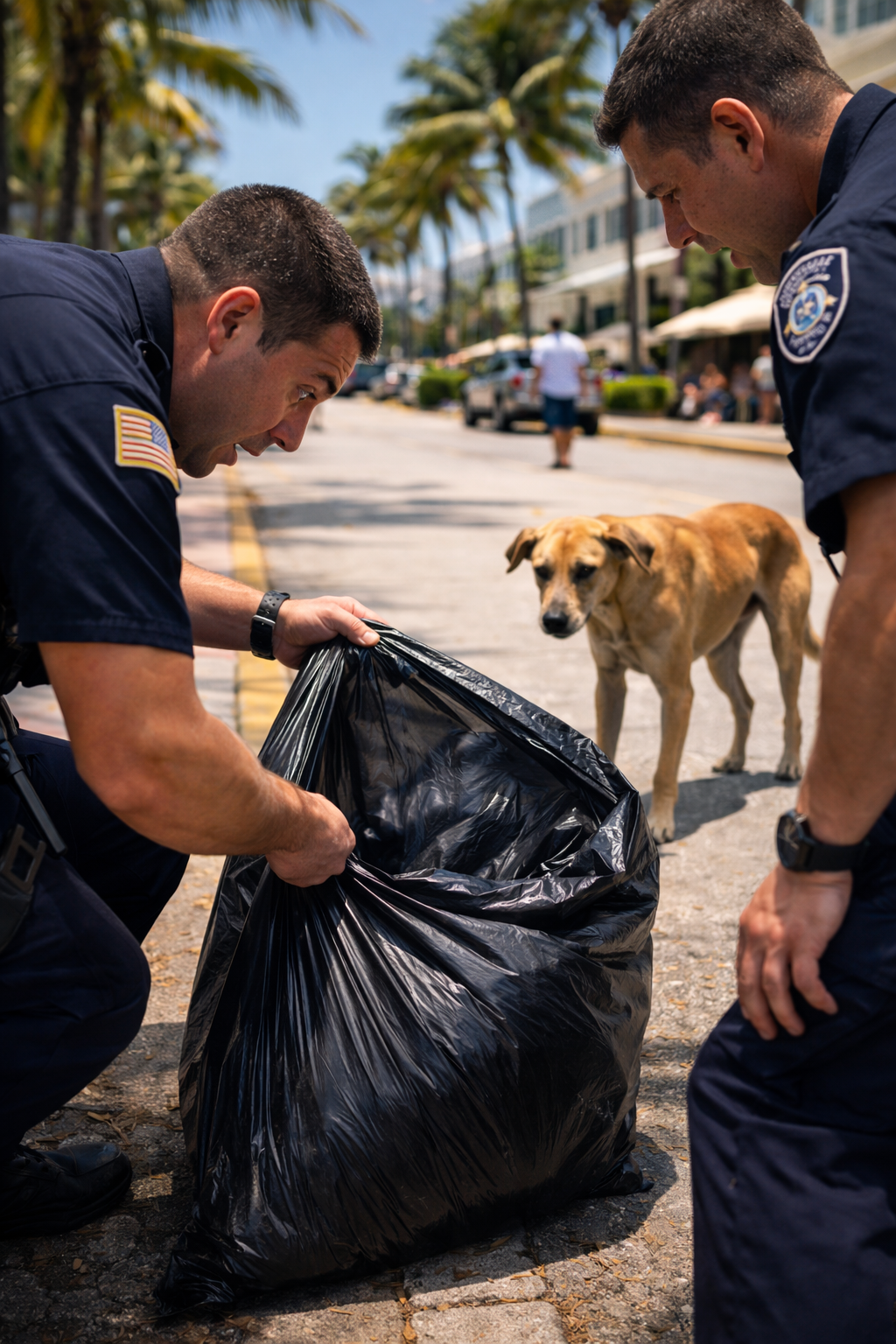 One of the officers bent down and picked up the bag, preparing to place it back into the bin. It was routine, automatic, something done without a second thought.
