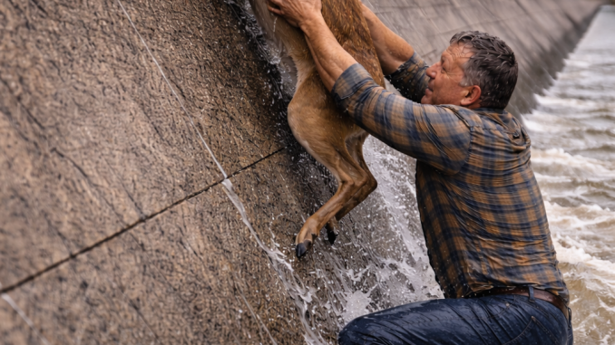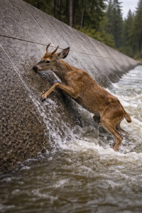 The animal kept trying to climb the steep concrete wall, but the surface was too smooth and slippery. Each attempt ended the same way — the deer would slide back down into the cold water.