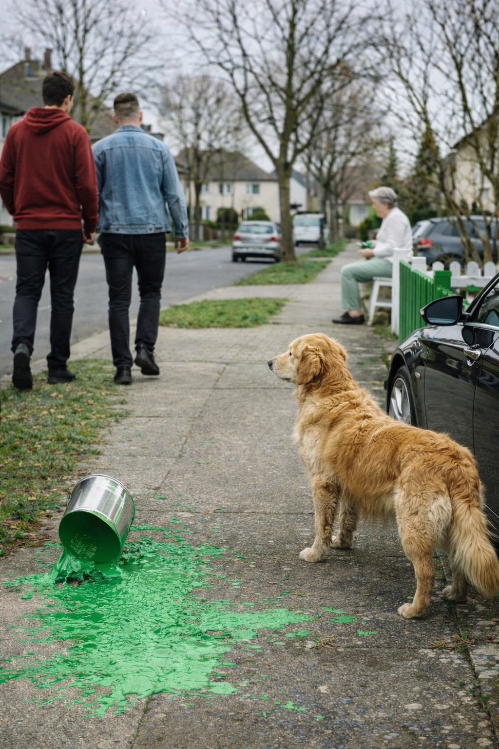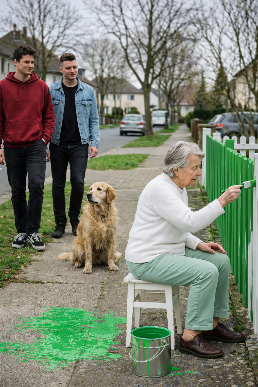 They Mocked an Old Woman and Kicked Her Paint Bucket… But the Dog Delivered Instant Karma