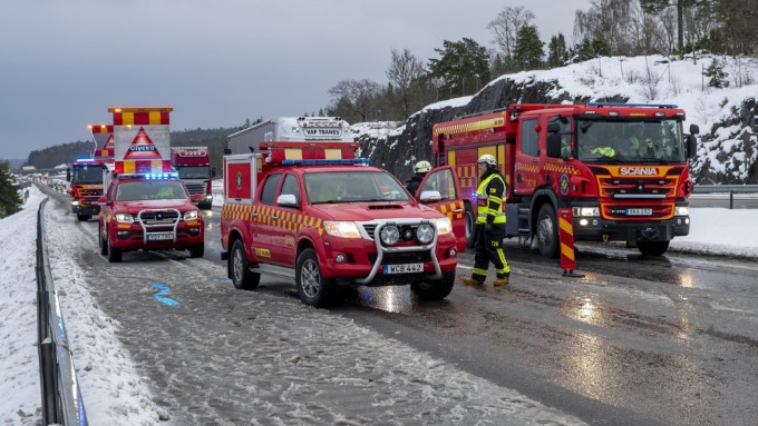 “Tung lastbil har vält på E4 – nu har det blivit långa köer och stor förseningar”