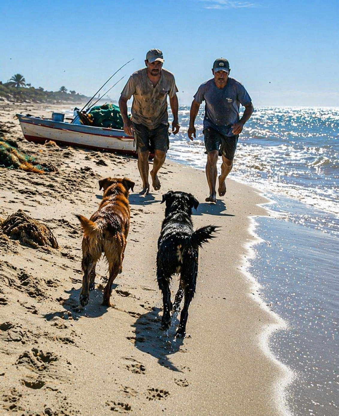 The fishermen looked at each other, confused at first, then curious. Something in the dogs’ behavior was different. It wasn’t random. It wasn’t playful.